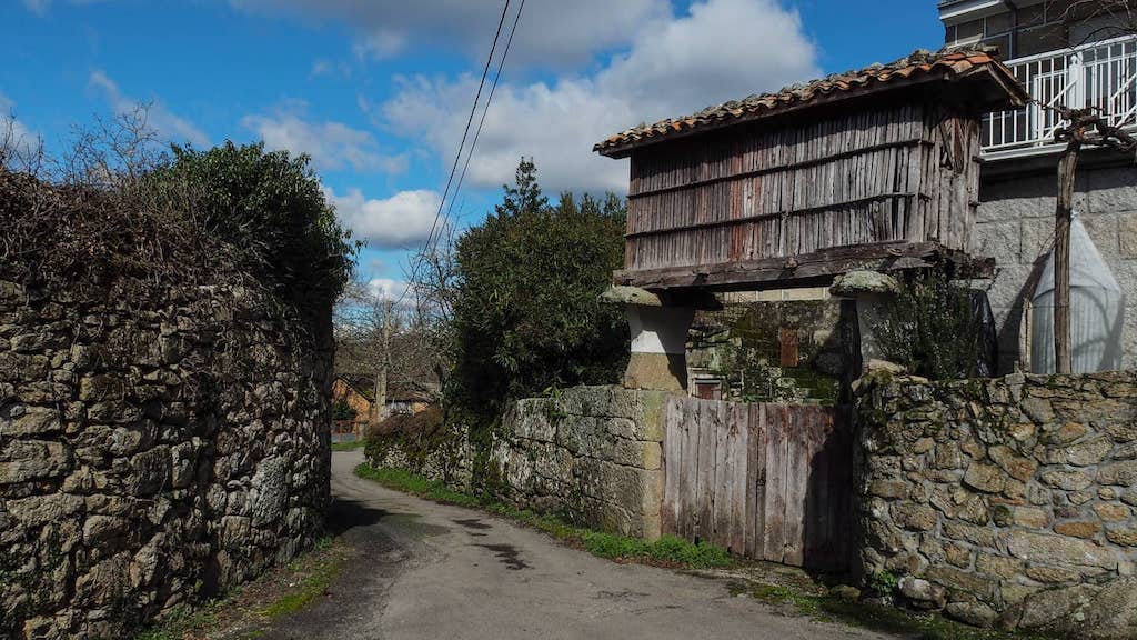 O noso próximo lugar é O Covelo. Despois de pasar por impresionantes castiñeiros e carballos, hai que prestarlle atención ás interesantes mostras de arquitectura tradicional, como os hórreos, case todos de estrutura de madeira sobre cepas, algún deles elevados como pórtico de entrada á eira, e moitos en estado de abandono.