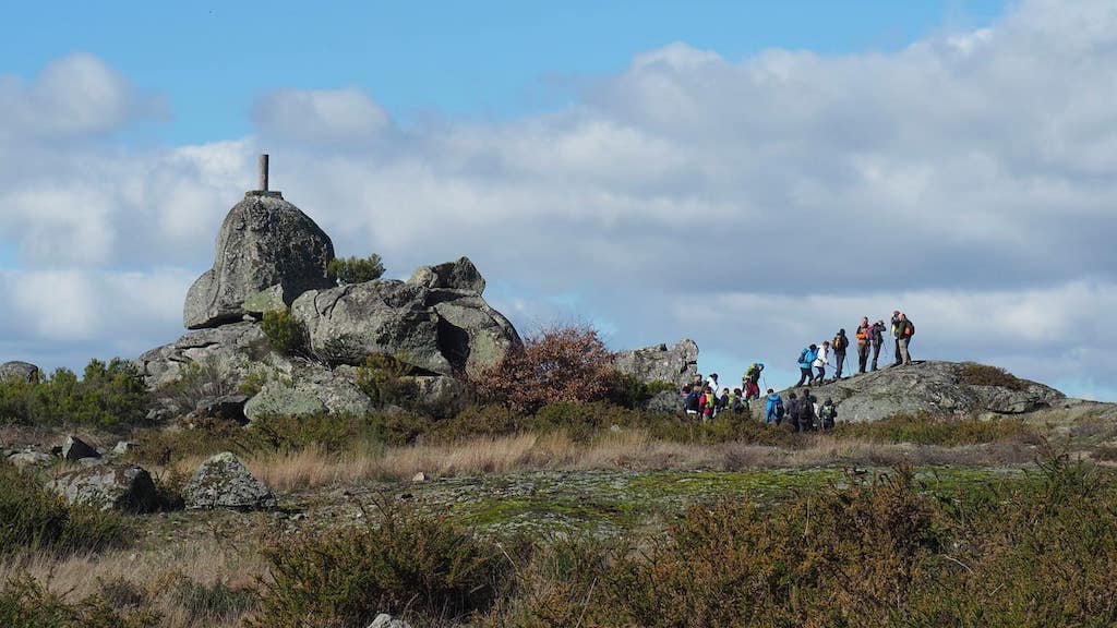 Logo de encaramarnos á cruz para desfrutar da paisaxe, aproveitamos estes penedos para protexernos do vento, que zoa con pouca forza pero un pouco frío, e tomar un pequeno refrixerio para, a continuación, achegarnos á Farria, a uns 200 m ao leste da cruz de pedra.