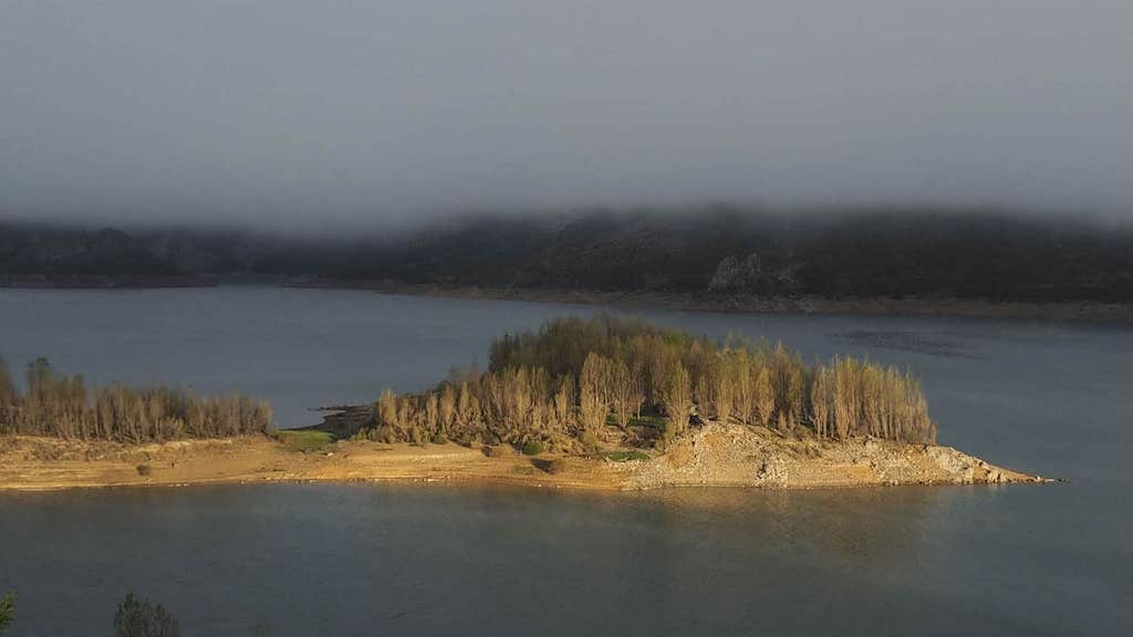 Dende esta atalaia, aínda medio cuberta pola borraxeira, vexo como despunta o día sobre o encoro e non quero imaxinar o drama que provocou a súa construción, obrigando a sacrificios que non se viron compensados (non hai quen compense o desarraigo forzado), e as moreas de esperanzas atrapadas no fondo destas augas. A pesares da maxestuosidade desta paisaxe, é triste ver que trinta anos despois, o que ía ser riqueza para o sur da provincia en aras do interese xeral, só o foi para as grandes construtoras e as compañías eléctricas… É hora de subir a almorzar e prepararse para a pequena ruta de hoxe.