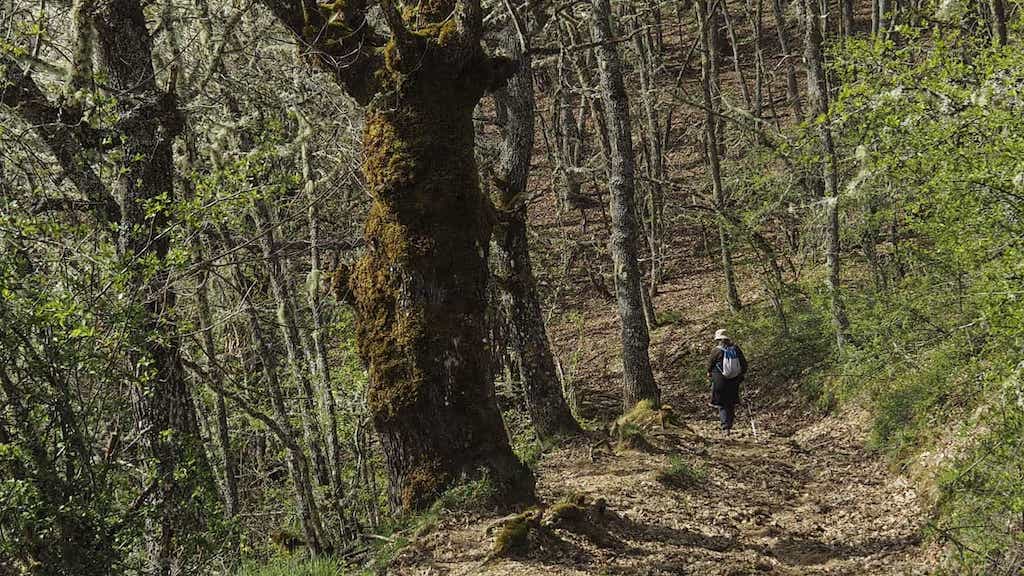 Dando vista a Carande e sen adentrarnos no monte, baixamos por pradeira á esquerda, meténdonos despois nun fermoso bosque mixto onde imperan os carballos, entremezclándose carballos albares e rebolos (aquí si que a primavera xa se comeza a notar).