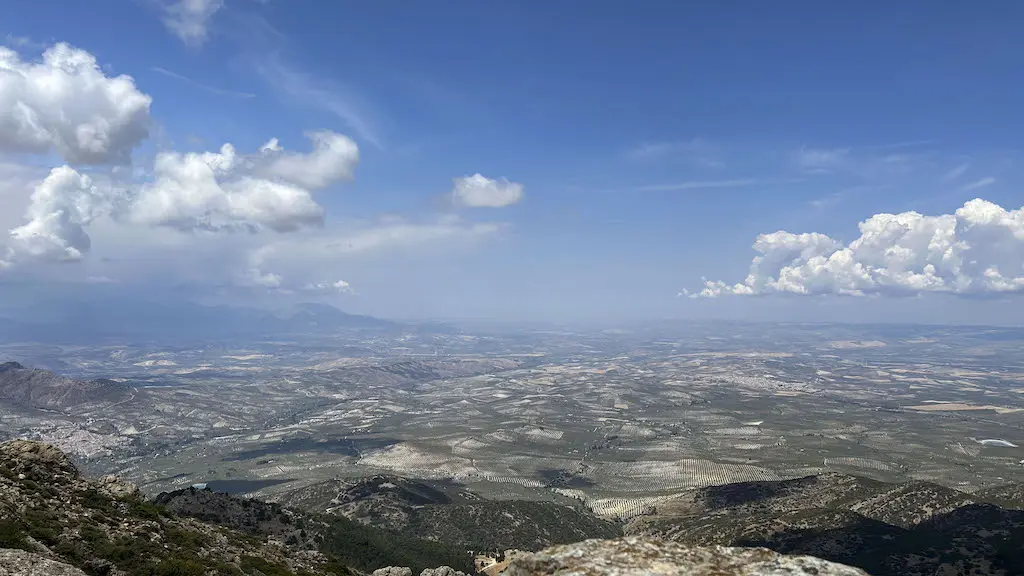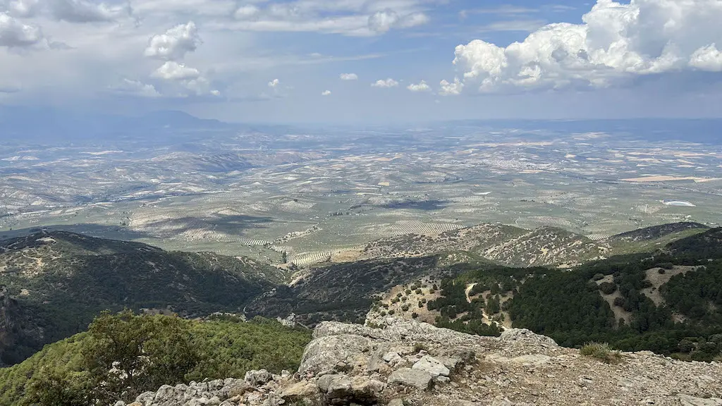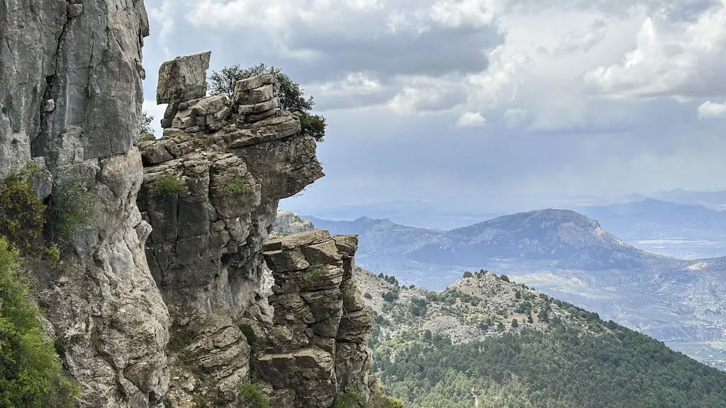 Cos seus 1848 m de altitude, bríndanos unhas incribles panorámicas en todas as direccións. Polo leste vemos Quesada coa súa serra, a campiña de oliveiral, Sierra Mágina, coroada polo pico do mesmo nome, o máis alto da provincia de Xaén (2164 m), estendéndose as vistas ata máis aló da Loma de Úbeda, na campiña. Máis cara ao sur, disque en días claros (hoxe non o é pola calima que hai no ambiente) podemos ver ao lonxe os cumes de Sierra Nevada. As vistas meridionais, xa sobre as montañas do parque, están coroadas polo pico Cabañas e inclúen o nacemento do Guadalquivir. Cara ao leste vemos a profunda fendedura do val deste río e as montañas que o flanquean polo lado oposto, como o Calar de Juana e os Poyos da Mesa. E finalmente, cara ao norte, os interminables panos montañosos das Serras de las Villas e Segura.