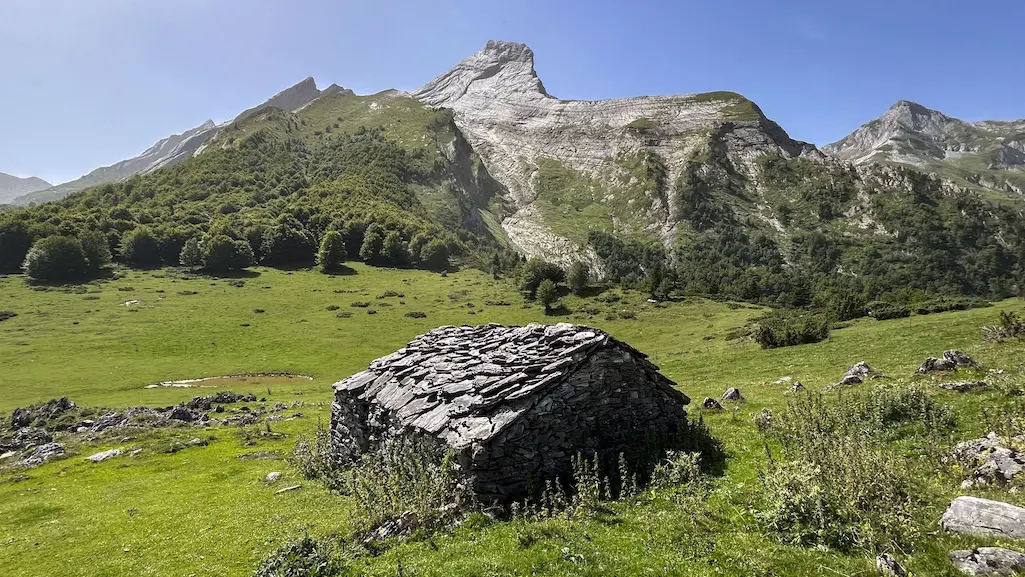 Ao chegar á Cabanne a paisaxe ábrese e temos unhas vistas moi amplas e fermosas do val de Eaux Bonnes, co enorme Soum de Grum (1870 m) xusto enfronte, moi preto do Col d’Aubisque.
