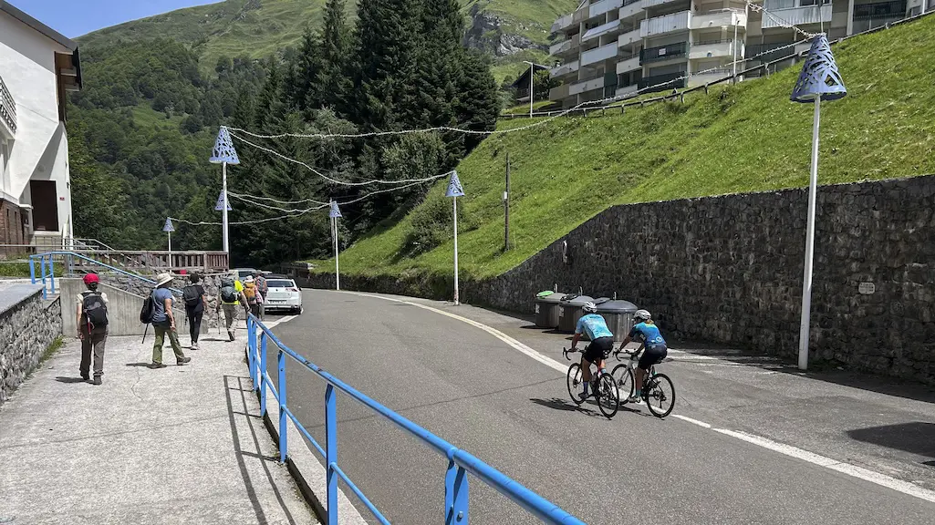 O itinerario comeza no aparcadoiro para coches e autobuses á entrada da estación de esquí de Gourette, á beira do Club Alpin Français. Pasamos por diante da Oficina de Turismo de Gourette (Maison de Gourette), cruzamos Gourette e, chegados a unha encrucillada, a Place de Sarrière, dividímonos en dous grupos. Un cara o Lac d’Anglas conducido por Víctor, e outro cara á cabana de Bouy, guiado por Rocío. Chama a atención a cantidade de ciclistas que suben pola estrada ata o Col d’Aubisque, porto de montaña mítico do Tour de France.