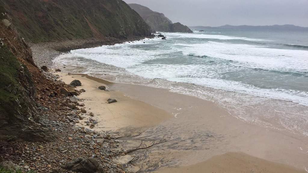 A praia de Ponzos, un areal de 1400 m de lonxitude que atopamos hoxe sometido a unha forte ondada, atesoura un sistema dunar ben conservado. Sempre que andamos por estes espazos dunares non me canso de insistir no comentario de que son moi sensibles e valiosos, polo que coidalos está nas nosas mans!