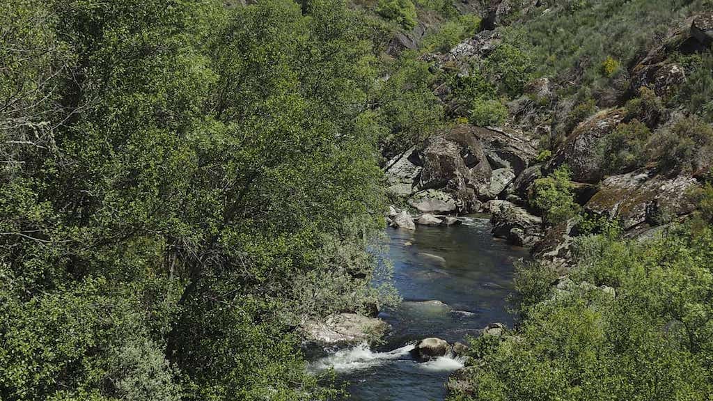 Cruzamos o Tuela pola Ponte do Couço, que corre por un cauce granítico semellando que o val é aquí bastante encaixado, cuberto por ameneiros, salgueiros, freixos, chopos… e toca ascender polas costas do Alto de Parada, máis húmidas e frías que as que vimos de descender, atopándonos con pequenas matas de carballos, que nesta rexión chaman touças. Outra especie arbórea con presenza case constante ao longo do percorrido é o castiñeiro, con soutos que se ve que se aproveitan anualmente do seu froito.