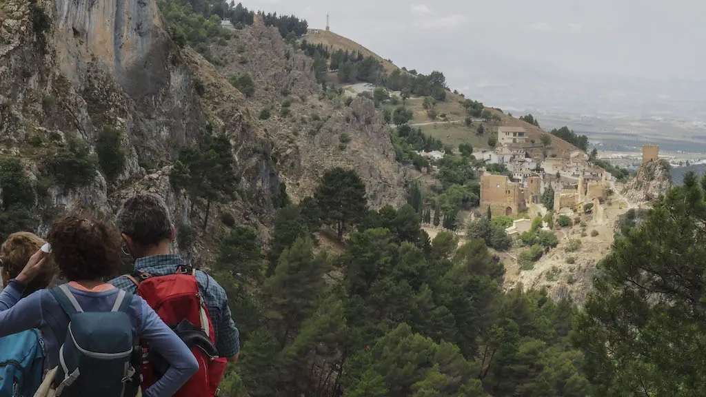 A medida que avanzamos imos identificando La Iruela. A inverosímil silueta da torre do seu castelo, empolicado sobre un vertical espolón rochoso, é unha das estampas máis fotografadas neste final de etapa. Pola súa ubicación, a conquista desta fortaleza de orixe musulmá debeu ser un óso duro de roer.
