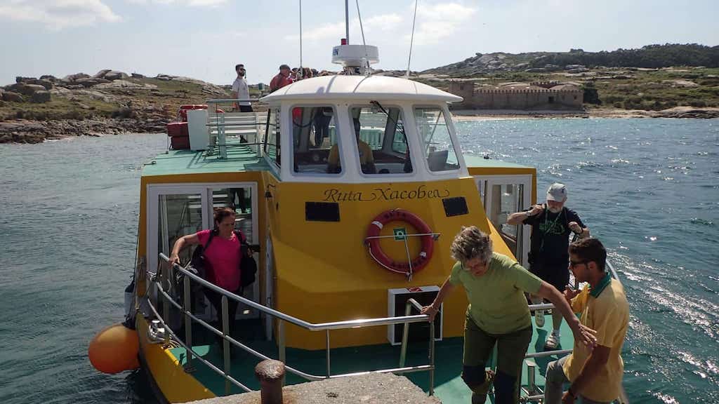 Unha vez que desembarcamos fronte á Praia do Almacén, único arenal ao que é posible acceder, a nosa guía chamada Úrsula reúnenos para comezar a primeira ruta sinalizada ata o faro.