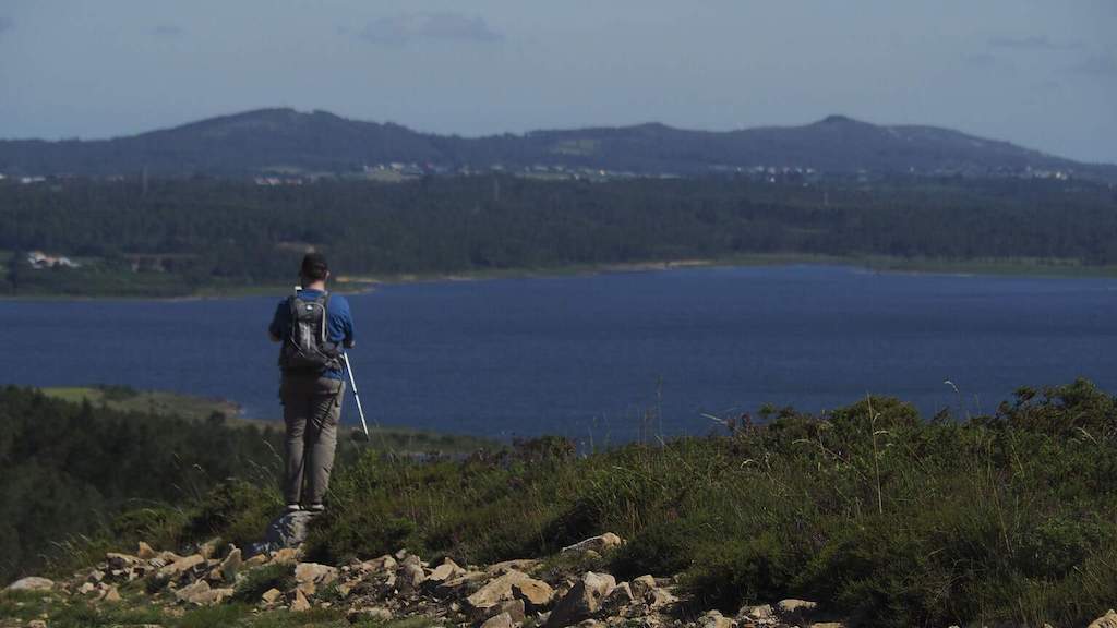 Por este lugar pasa o camiño que leva a Fisterra e Muxía, e que visitamos no pasado mes de abril cando fixemos o percorrido entre Santa Mariña e Dumbría. Xa comezamos a ver aos camiñantes máis madrugadores, pois supoño que veñen todos dende Negreira. Comezamos a andaina polos montes da parroquia, á beira do encoro do Xallas.