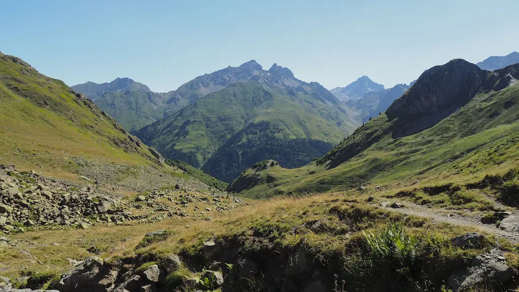 O Col de Suzon é un magnífico paso entre o Pic du Midi d’Ossau e o pico Saoubiste, dende onde podemos gozar dunha magnífica vista do val e do glaciario Pic du Midi d’Ossau! Se continuáramos baixando cara o val, chegaríamos á Cabane de Magnabaigt. Se subíramos cara á nosa dereita chegaríamos ao singular e escarpado Pic de Saoubiste (2261 m). E se subíramos polo carreiro á esquerda, cara a base do Midi d’Ossau. Que marabillade paisaxe!