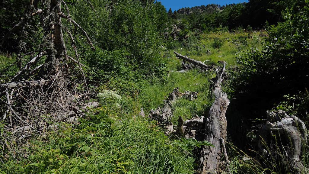 Xa no descenso, imos apreciando en moitos puntos do percorrido, no fondo do río, moitas árbores arrastradas, sobre todo cando chegamos de novo a Plano Cheto onde podemos ver perfectamente os efectos dos aludes pois a ladeira está practicamente despexada de árbores que foron arrancadas polas avalanchas de neve.