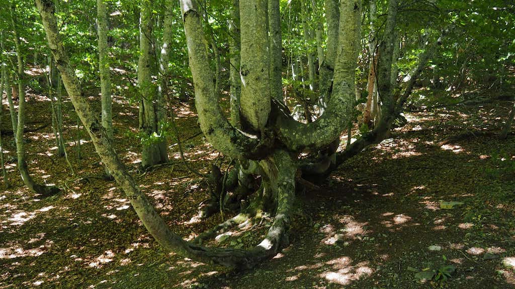Tras sobrepasar o desfiladeiro do Paso de l’Onso, camiño tallado na rocha sobre o que caen nun curto tramo unhas refrescantes pingas de auga que moito agradecemos, facemos un pequeno descanso aproveitando a sombra do faial e marabillándonos das formas que teñen algúns exemplares. Desde aquí a pendente suavízase e daranos paso á zona do Plano Cheto, unha chaira entre tanto barranco, zona de grandes faias que quedarán á nosa esquerda; de todos os xeitos hai moitos tramos desta primeira parte onde as faias acompáñannos no percorrido. Que marabilla!