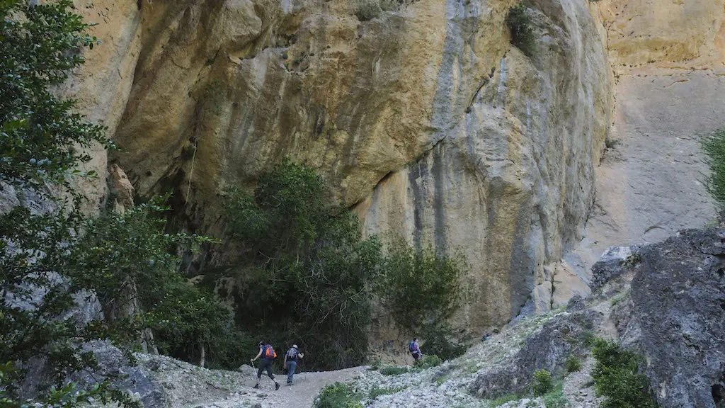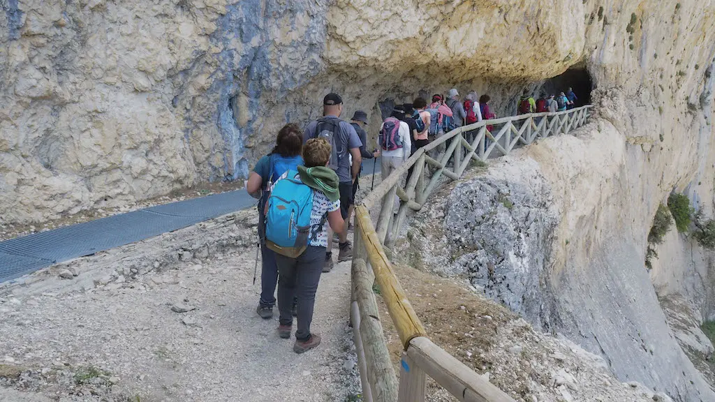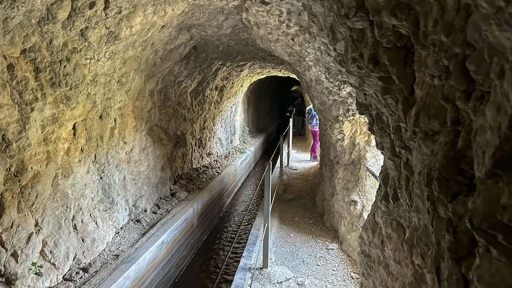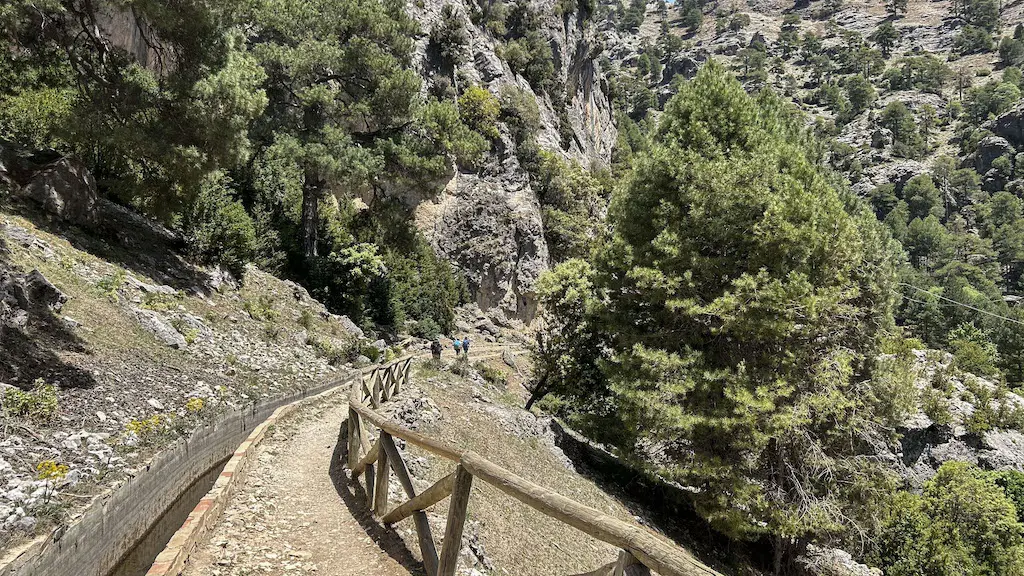 Pouco a pouco comezamos a subir pola senda empedrada cara ao Túnel del Picón del Haza, sen maiores complicacións. Nalgún tramos vai protexido por unha valla enreixada que axuda nos posibles desprendementos de terras, aínda que non dá moita seguridade. Chegados arriba, á repisa, dispómonos a entrar no túnel por un estreito carreiro paralelo a unha canle de auga, parte dunha condución a modo de acequia que leva a auga desde encoro de Aguas Negras ata a Central Eléctrica dos Órganos, que deixamos máis abaixo.