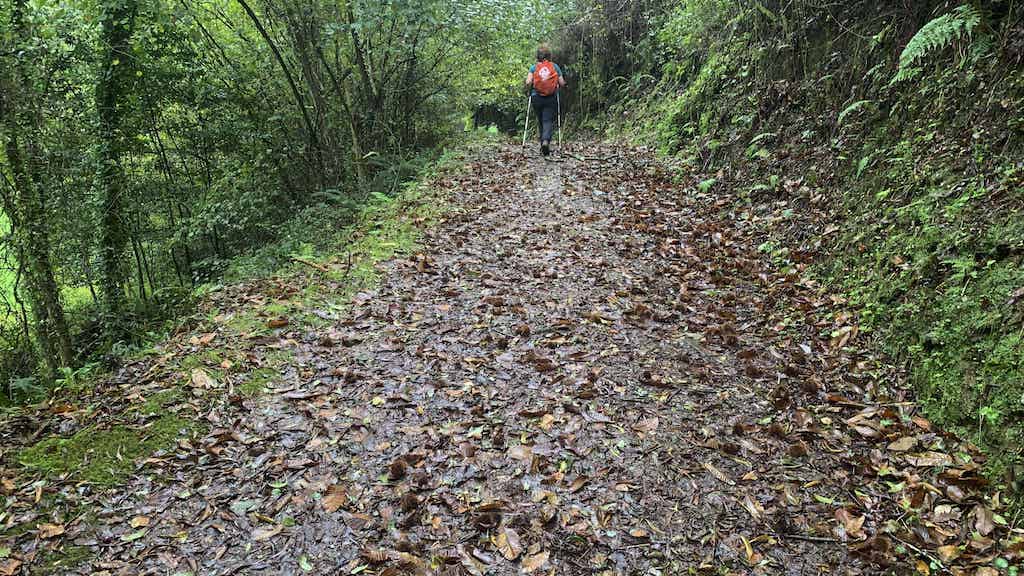 Camiñando polas proximidades de Valiñadares, aminoramos o paso e imos lentamente pois pasamos baixo castiñeiros e nogueiras que deixan o camiño sementado de noces e non nos resistimos a apañar unhas poucas. Tamén pasamos por tramos de eucaliptais, árbore que domina gran parte da paisaxe.