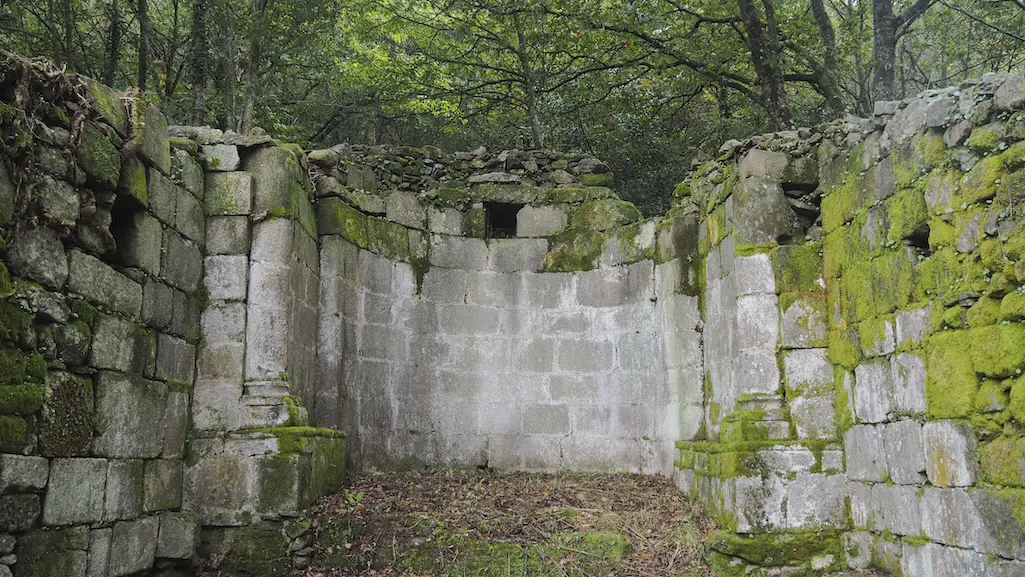 Pouco a pouco imos deixando o lugar e por fermosos carreiros fómonos aproximando ás aldeas de Galegos, Piñeiro e Montecelo, todas elas pertencentes á parroquia de Diomondi. Pero antes de chegar a estes lugares, apenas un quilómetro andado, desviámonos un pouco do camiño para ir coñecer as ruinas da Capela de San Pedro de Cela (s. XI-XIII), emprazada nunha ladeira de forte pendente. Os eremitorios comezaron a xurdir no s. VIII e aínda que do actual conxunto arquitectónico consérvase a planta románica da igrexa, segundo lemos no panel explicativo alí instalado, o sartego coa súa tapa que hai no adro é un elemento a ter en conta para datar moito antes este lugar de culto, na segunda metade do s. VI.