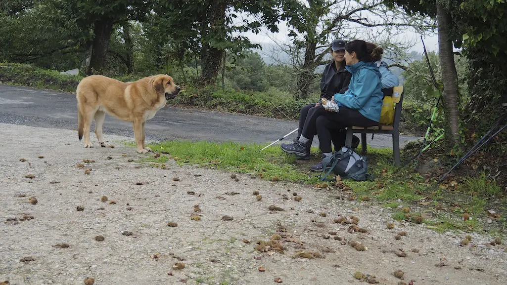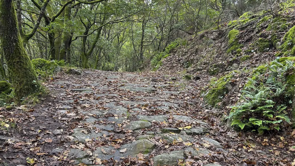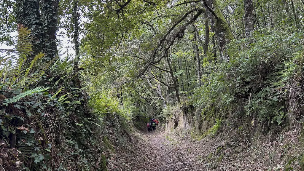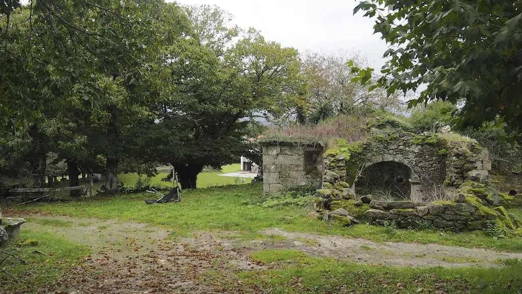 Seguimos a nosa travesía por carreiros que van entre castiñeiros e carballeiras que nos comezan a regalar os seus ocres outonais. Pasamos xunto aos lugares de O Castro, Barrio e A Reguenga, antes de rematar esta etapa en Mourelos, diante do seu cruceiro.