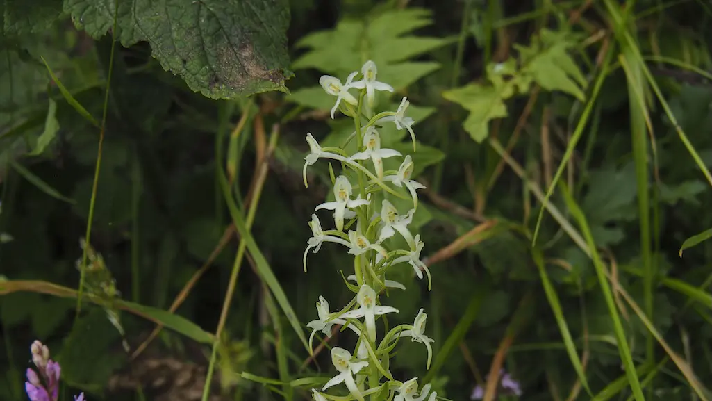 Ata a Cabane du Bourdiou d’Aspeigt camiñamos baixo un bosque espectacular, con moita humidade no ambiente. Pouco a pouco o terreo comeza a ser máis costaneiro iniciando un zigzagueo practicamente ata chegar ao collado onde se asenta a Cabane d’Ibech. Si que tivemos moita sorte coa flora que fomos atopando a medida que imos ascendendo. Non gozamos das vistas pero detémonos aos poucos marabillándonos coa flora, pois os valados están cheos de plantas con flores.