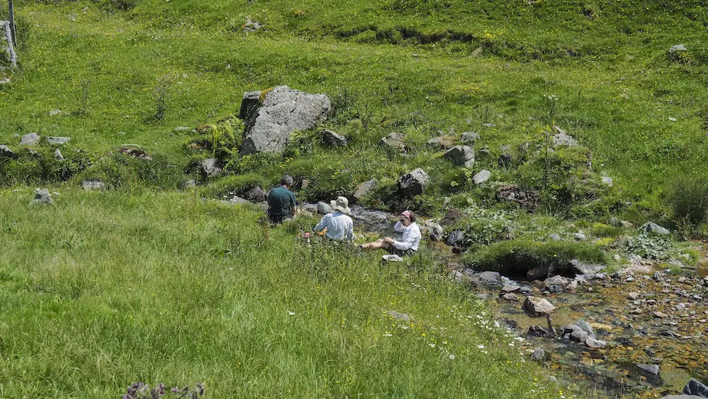 Que espazo tan fermoso! Logo desta intensa subida, decidimos facer un merecido descanso. Mentres algúns deciden poñer os pés a remollo nas frías augas do río, outros achegámonos ata a cabana buscando un pouco de sombra.