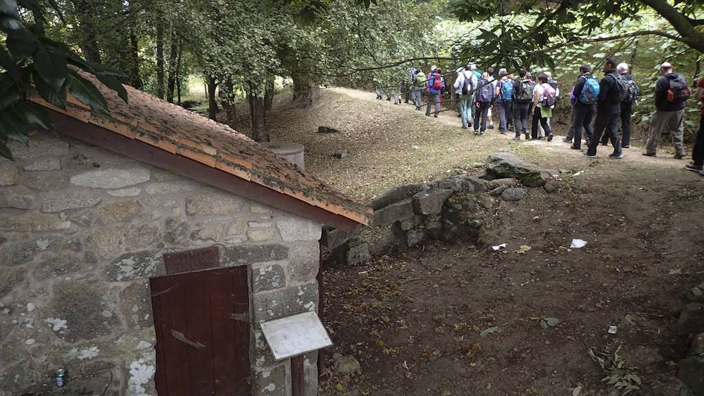 Agrupámonos en Galiñáns (Meaño), xunto á ponte de Caxoi, que cruza o río Chanca, para comezar o percorrido, duns sete quilómetros, no que partimos practicamente dende o nivel do mar por unha suave e agradable subida seguindo o curso do río Chanca ata o mosteiro da Armenteira.