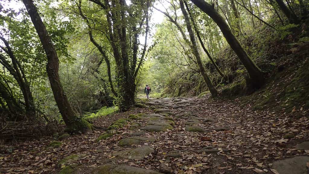A segunda parte do percorrido non desmerece en absoluto, tamén é un tramo precioso. Descendemos por un antigo camiño que daba servizo aos muíños e tamén era utilizado polos romeiros o luns de Pascua para subir ata o mosteiro.