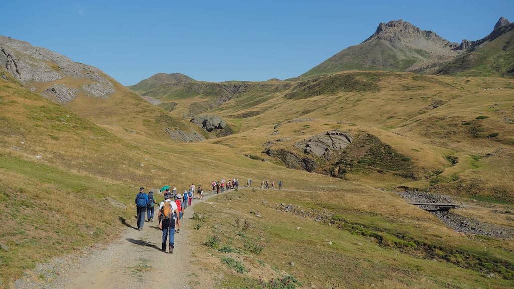 Chegados ao Refuge de Pombie, tras bordear o ibón localizado a carón do refuxio, comeza unha subida continuada por un camiño cómodo e de forte pendente onde a principal dificultade, ademais do esforzo físico, radica na calor e o bochorno que nos acompañarán durante todo o percorrido.