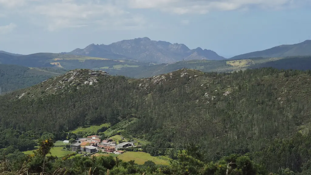 O Pindo, Fisterra, Mazaricos, Chan da Lagoa… son moitos os sitios que podemos ver dende alí. O camiño en xeral é moi cómodo e pasa por zonas agrícolas, onde as plantacións de millo teñen o protagonismo, montes con piñeirais, matogueiras e pasteiros. Tamén cruzaremos algún regato e veremos a capela de Santa Lucía. Un percorrido moi agradable e bonito que transcorre por camiños anchos e en xeral bastante cómodos.