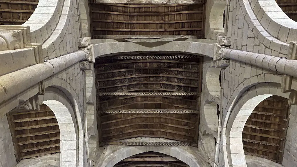 Traspasada a porta, atopámonos cunha igrexa de tres naves e catro tramos separados por tres pares de pilares cruciformes con semicolumnas adosadas, das que parten arcos formeiros e arcos faixados que soportan un fermoso teitume de madeira do século XV. Como en Xunqueira de Ambía, os formeiros soportan unha falsa galería, elemento que caracteriza dun xeito peculiar estes templos, dando esbeltez e elegancia, evitando a sensación de pesadez dos muros lisos. Dise que existiu un templo anterior do século VIII ou IX, no cal se descubriu o sepulcro da santa e sobre o cal se construíu o mausoleo ou Camarín da Santa que hoxe se sitúa no interior da igrexa. A esta hora do día, é fermosísimo o efecto da luz tamizada polo rosetón. Que sorte ter atopado aberto o templo!