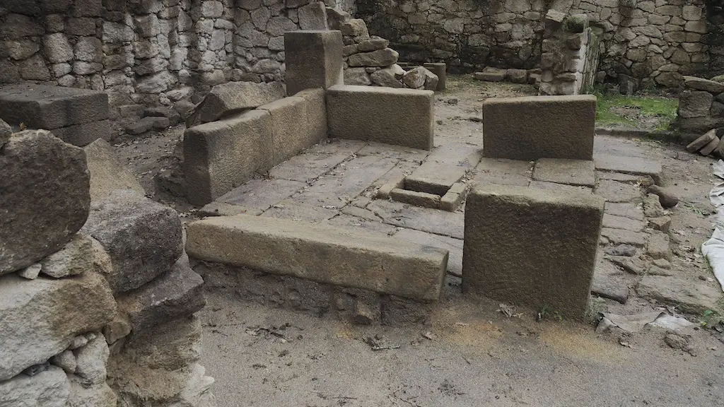 Camiñamos polas súas rúas, perfectamente aliñadas e pavimentadas, chamándonos a atención as canles de augas pluviais que nos rodean, a rede de saneamento que podemos observar, casas, adros con pórticos dos que se conservan algunhas columnas, e un traballo coidado e impresionante de cantaría. Podemos intuir que era un poboado cun gran número de casas, e nalgunha delas mesmo se conserva a lareira decorada.