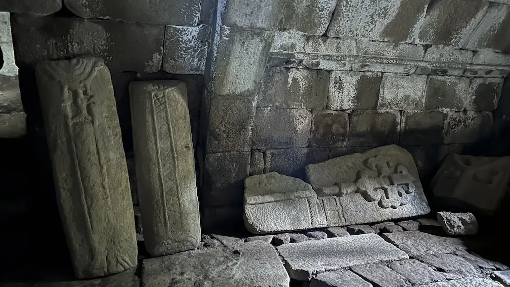 Nun dos laterais unha pequena porta condúcenos á cripta subterránea chamada O Forno da Santa. Aproveitamos para baixar a ela mentres un grupo de excursionistas agarda a que o fagamos nós. Este lugar era algo que estaba a desexar ver polo moito que me ten falado Suso del, dende que se desviou ata aquí, percorrendo hai anos o Camiño de Santiago, parecéndolle un lugar alucinante. Polo que estivemos a ver, na cripta hai tres estancias, nas que podemos atopar un altar, lápidas medievais, unha piscina pétrea, a Pedra Formosa, e a xoia do lugar pola lenda que o rodea: o forno no que San Pedro salvou a Santa Mariña de morrer queimada. Subimos da cripta marabillados e sorprendidos por ter encontrado algo así.