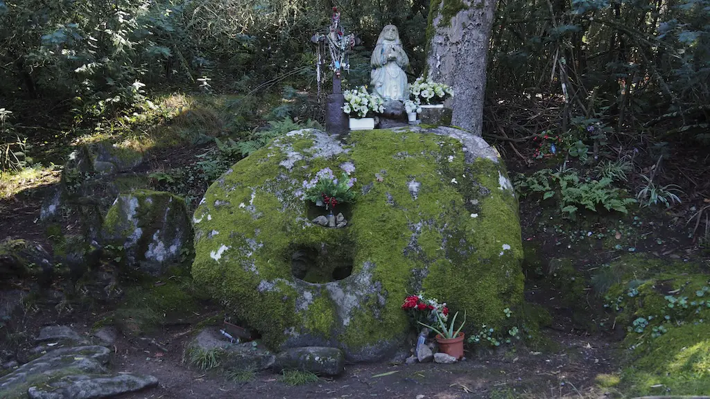 Xa queda pouco para chegar a Santa Mariña, pero aínda temos máis elementos lendarios por ver. Pronto nos encontramos co Asento da Santa, onde a lenda nos conta que Mariña pasaba longos días de pastoreo alí sentada e por iso tamén deixou as marcas dos seus tacóns na rocha.