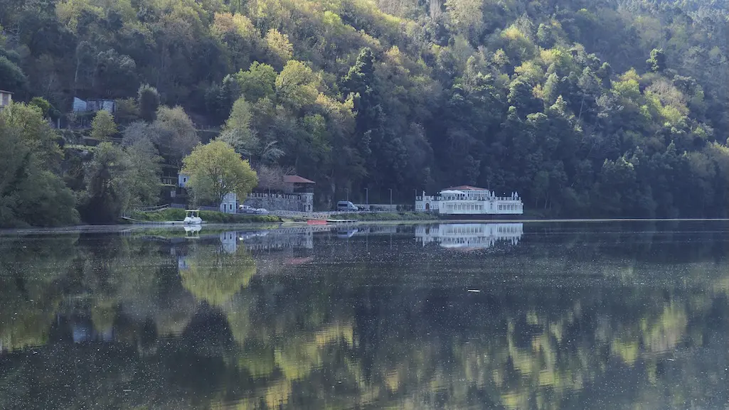 Nos primeiros pasos aínda podemos ver o Balneario Vello reflectíndose sobre o río, se botamos a vista atrás. Seguimos o camiño a carón do encoro ata chegar A Barca, aldea abandonada que nos sorpende por estar rodeada dun fermoso bosque de loureiro. En tempos pasados, calquera viaxe acababa utilizando barcas ou pontes para poder cruzar o río. Proba disto é a abondosa existencia de topónimos relacionados con barcas e con pontes, como é o caso.