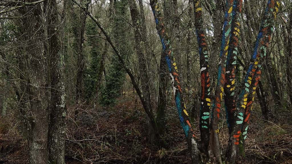 Percorremos este espazo coa intervención de Ibarrola entre as ovellas e cruzamos á outra beira do río por un pontillón sobre un río Arnoia que baixa espectacular con augas limpas e mansas, o que nos permite fotografar fermosos reflexos.