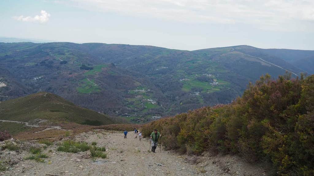 Tras este arreón, que me deixou case sen folgos, chegamos ao Alto do Lago (1300 m), o que nos permite ter un leve descanso na subida, mentres nos reagrupamos, e as pernas agradéceno ben. Neste punto deixamos o concello de Samos e entramos no de Folgoso do Courel. Non paramos de subir, pero a pendente ata A Escrita modérase bastante.