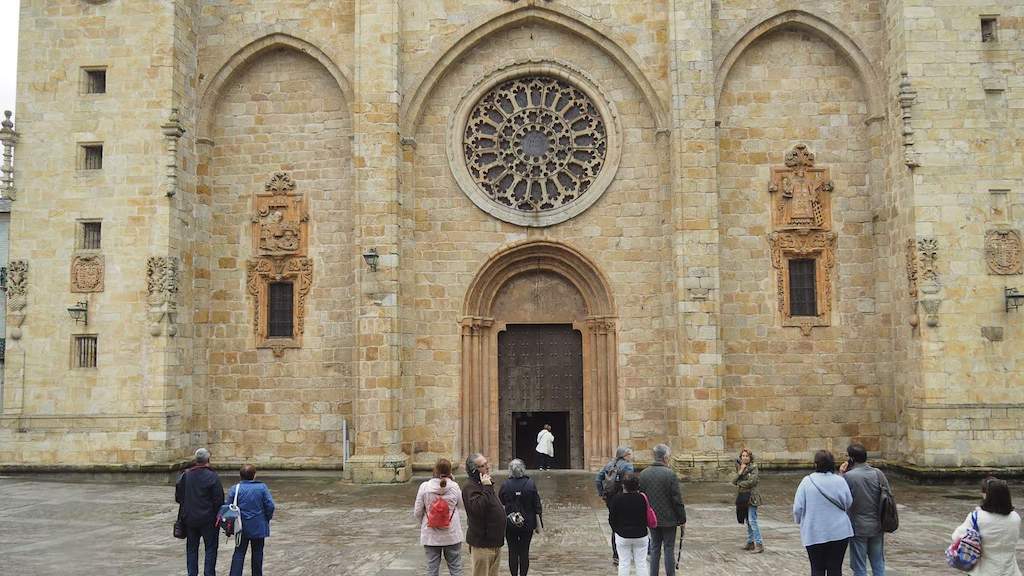 O máis relevante dentro deste destacado legado patrimonial é a catedral. Declarada Monumento Nacional en 1902, foi comezada no s. XII en estilo románico e sometida a reformas posteriores onde predominan os adornos barrocos, cun claustro de mediados do século XVII, fachada e torres do século XVIII. Non imos facer unha descrición pormenorizada deste fermoso templo durante o percorrido pola catedral, a sancristía, o claustro, museo e sala capitular. A visita foi con audioguía e, a pesares de que os guións reproducidos combinan investigación histórica e sensibilidade, polo que non dubido que sexa unha vantaxe para poder percorrer o templo, é un aparello ao que non me dou afeito, non megusta, pois pérdome algunha que outra vez entre a descrición e o que estou a ver. Prefiro unha persoa á que se lle poida preguntar.