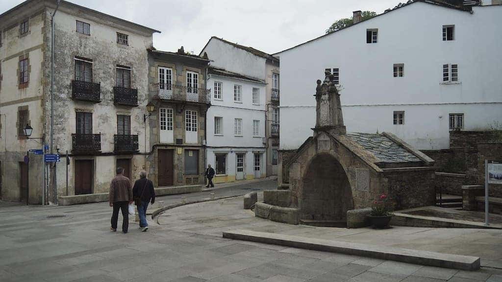 Logo de deixarnos o bus pola parte de atrás do Seminario, achegámonos ata a praza da catedral pasando pola Fonte Vella, unha fermosa fonte do s. XVI, fronte á casa natal de Álvaro Cunqueiro, tamén chamada Fonte de Cunqueiro. A verdade é que o autor mindoniense está presente en cada recuncho desta vila.