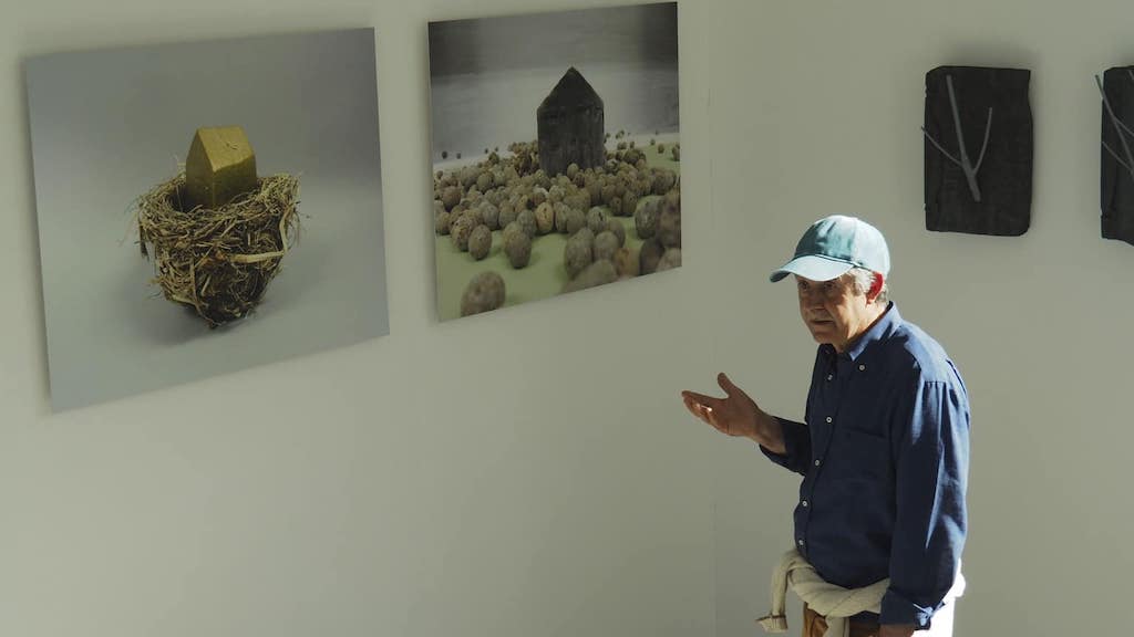 Logo, entramos no edificio do propio Espazo Caritel, onde nos explica coa mesma paixón as súas obras máis representativas, composicións de cerámica e fotos, ou a instalación ubicada na terraza que recrea as impresións da dramática burbulla inmobiliaria e as súas consecuencias. A min gustoume especialmente a obra fotográfica.
