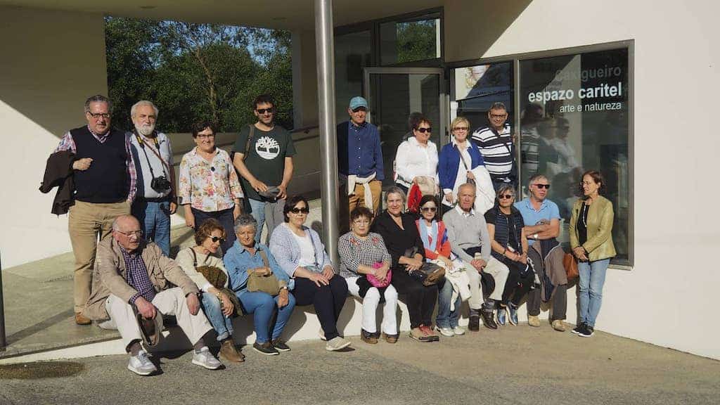 Logo de pasar pola fonte da Zapata, fonte que a tradición lle atribúe outro milagre a San Gonzalo e, polo que nos dixo a guía, moi boa para problemas dos pés, achegámonos ata o Espazo Caritel, onde Caxigueiro, un dos artistas plásticos galegos máis recoñecidos, nos amosou os seus dominios, creando un punto de encontro para a arte e a natureza á beira desta vella Catedral románica.