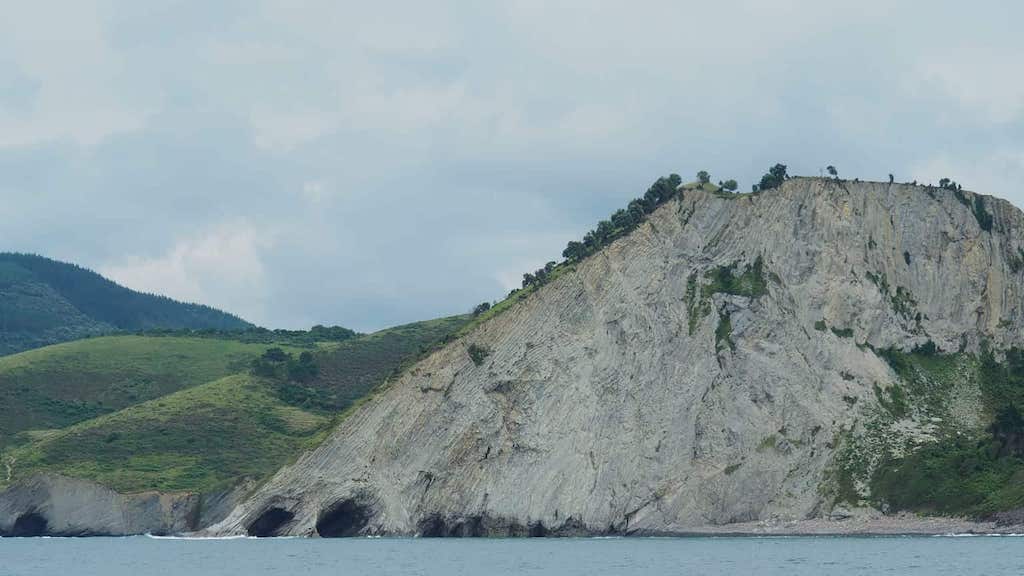 Pouco antes das cinco desprazámonos ata o pantalán do porto, cheo de rapazada que disfruta do baño, para embarcar e facer a travesía en barco ata Zumaia, onde finalizará a visita guiada realizada por persoal do Xeoparque, que nos irá amosando dende o mar os puntos máis importantes e singulares, como o flysch negro de Deba ou as covas de Aitzuri, e admiraremos a beleza dos cantís do Flysch neste tramo da costa, calas recónditas e unha das maiores rasas mareis de Europa.